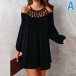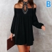 Sexy Off-shoulder Long Sleeve Solid Color Loose Dress