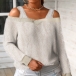 Sexy Off-shoulder Long Sleeve Solid Color Plush Sling Top