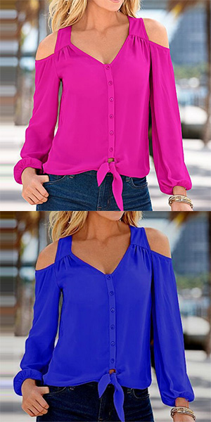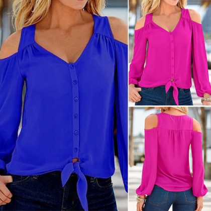 Solid color style,with off-shoulder and long sleeve design,this shirt can offer you a sexy yet stylish style.