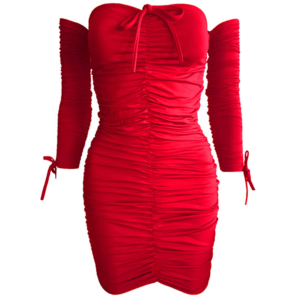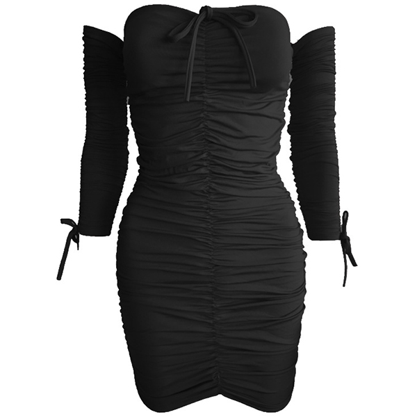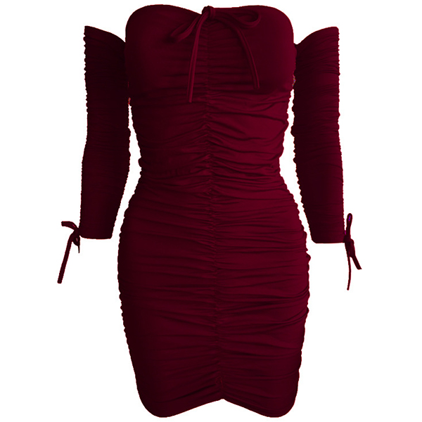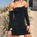 Sexy Off-shoulder Long Sleeve Solid Color Slim Fit Dress