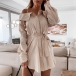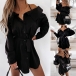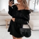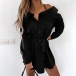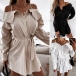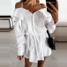 Sexy Off-shoulder Long Sleeve Solid Color Sling Shirt Dress