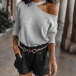 Sexy Off-shoulder Long Sleeve Solid Color T-shirt