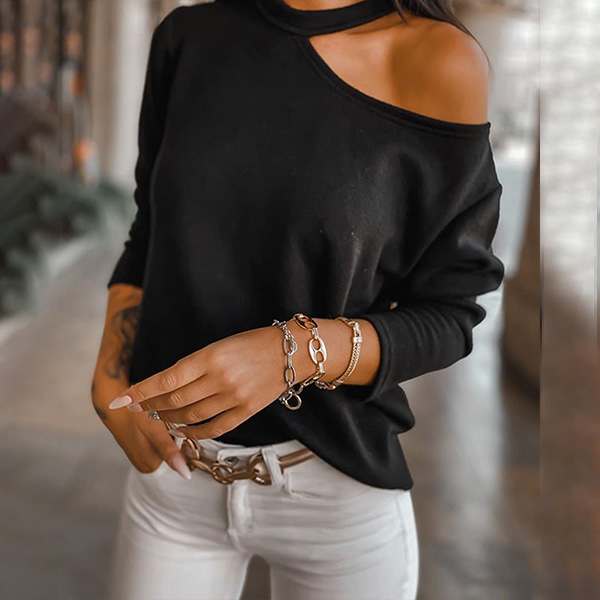 This t-shirt that exudes stylish and cozy vibes is worth to arouse your attention. Solid color style,the unique off-shoulder design can lend you a dash of sexy and feminine appeal,while its soft and breathable fabric will give you a comfortable day. You can just slip into this piece to update your style.