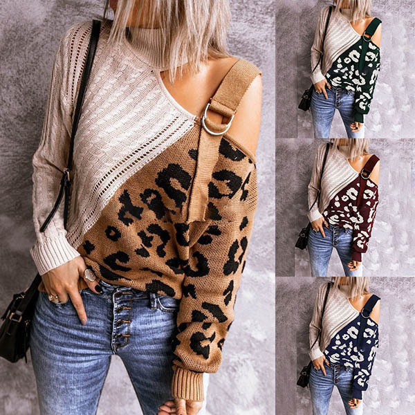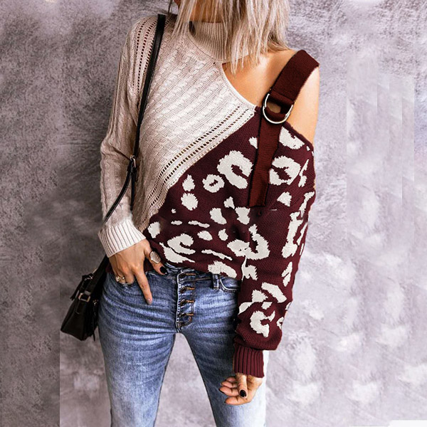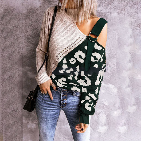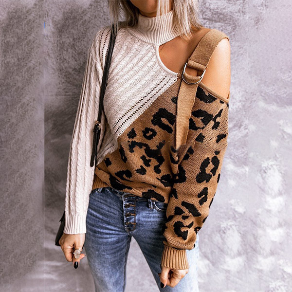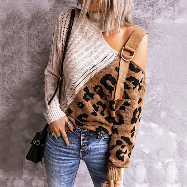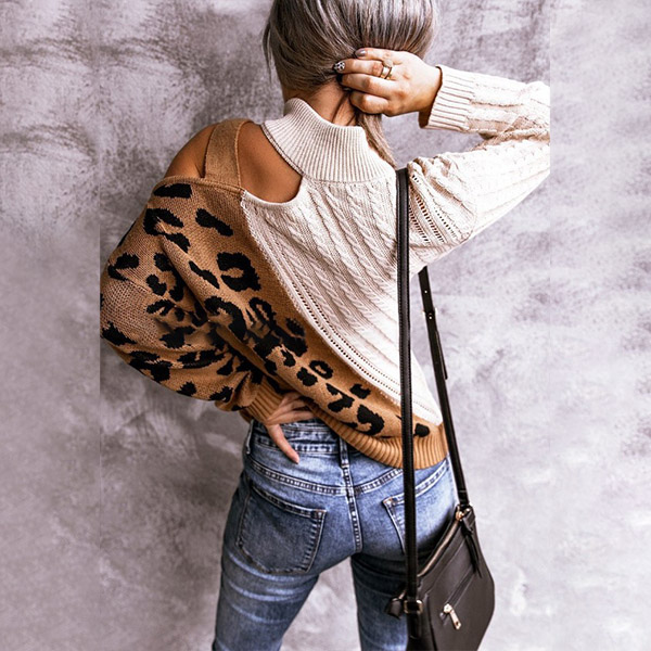 Combines of stylish and sexy vibes,this knit top is yearning for a place in your wardrobe when the days get cold. The off-shoulder and leopard printed spliced design are the highlight,which can make you look sexy and flirty. Its soft fabric and turtleneck can keep you warm and comfy. Give your wardrobe a seasonal update with this piece.