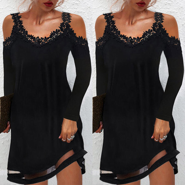 A perfect combination of sassy and flirty vibes,this dress is yearning for a place in your wardrobe. The off-shoulder,v-neck and lace spliced details will offer you a more alluring look. What you need to do is just slipping into this dress and matching with your sexy heels,then you can look effortlessly charming and beautiful!