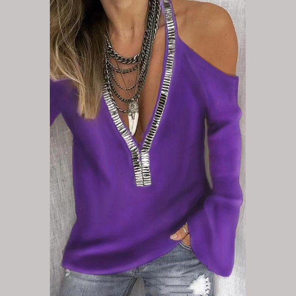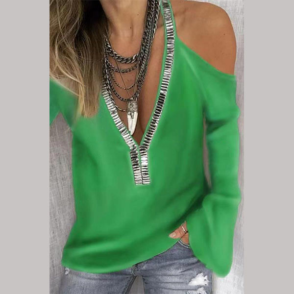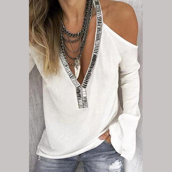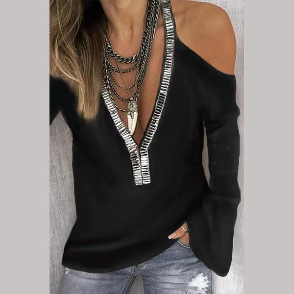 You can easily exude your sexy and feminine side through this t-shirt. The off-shoulder and v-neck design make this piece look so alluring,while the sequin spliced design will make it look more attractive and shinning. When you wanna update your daily style,you can just slip into this little piece.