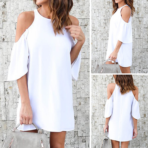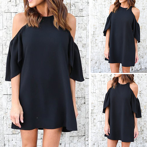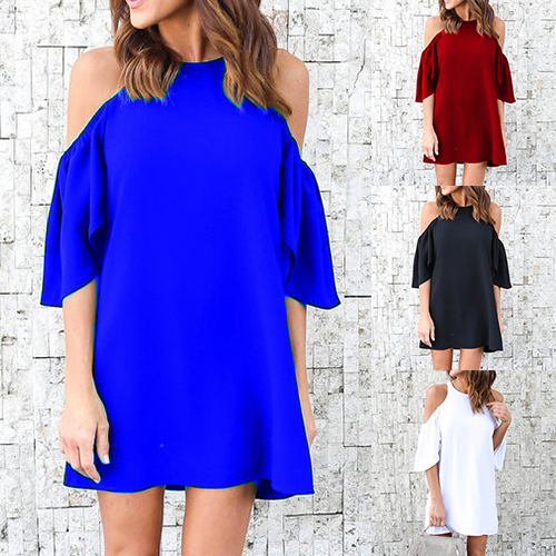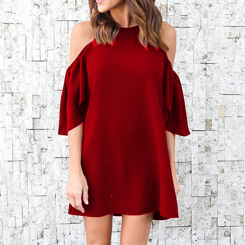 accompanied with off-shoulder,lotus sleeve and a shift silhouette,this dress can lend you an appealing look.