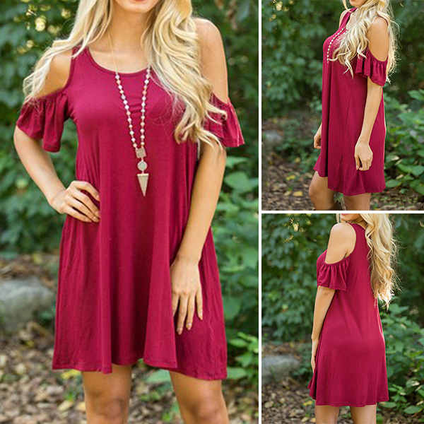 Make your casual style upgraded with the help of this dress. Solid color style,its off-shoulder and lotus sleeve design