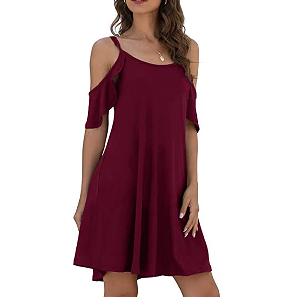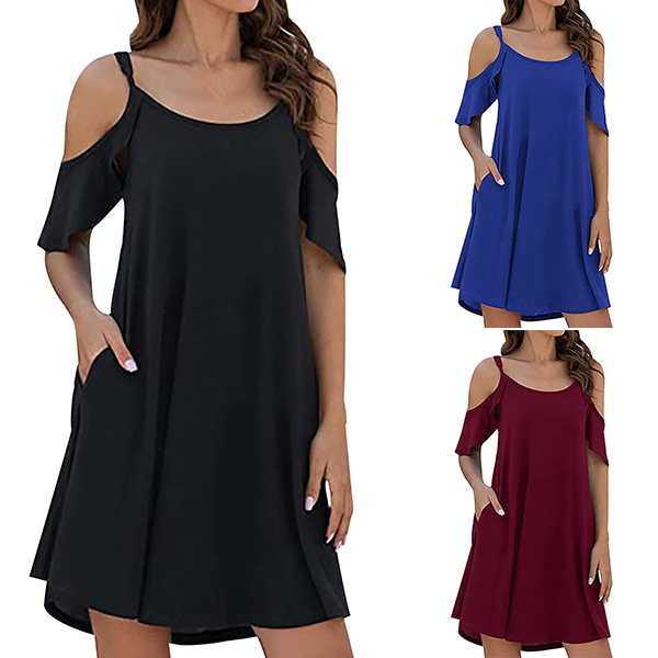 When you go out in these summer days,you can trust in this dress to express your beauty and charm. Solid color style,the off-shoulder and lotus sleeve design will make this piece full of sweet and flirty vibes,while its soft fabric and loose silhouette design can give you a comfortable day. Like this style? Then invite it to your wardrobe!