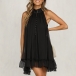 Sexy Off-shoulder Mock Neck Ruffle Hem Solid Color Dress