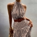 Sexy Off-shoulder Printed Halter Dress