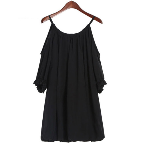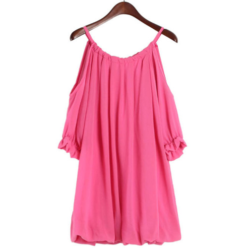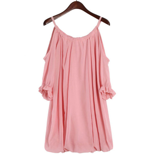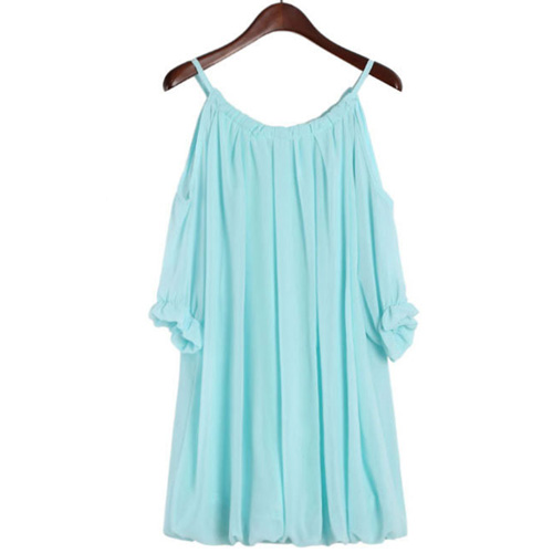 Sexy Off-shoulder Puff Sleeve Solid Color Chiffon Dress