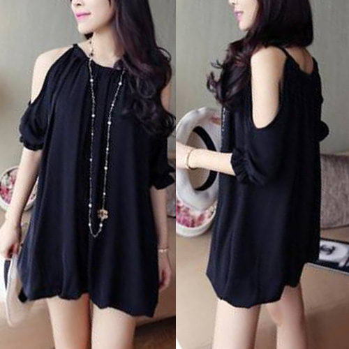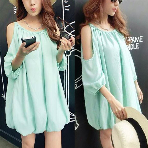 Off-shoulder style,with sweet puff sleeve design. If you want to go
