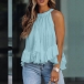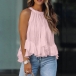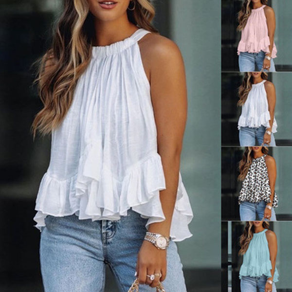 Sexy Off-shoulder Round Neck Ruffle Hem Loose Sling Top