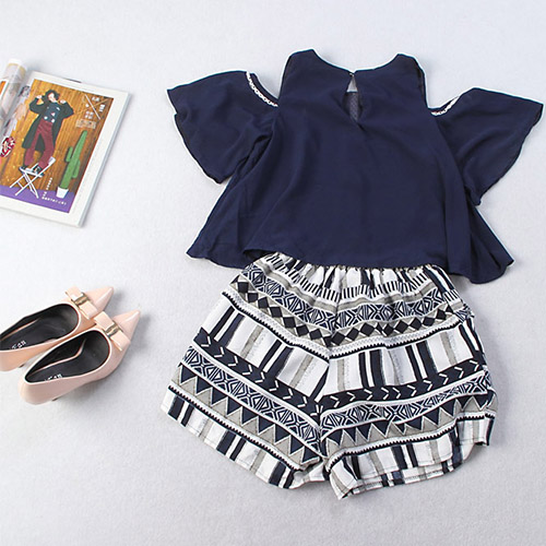 your worries. Including an off-shoulder short sleeve round neck top and an elastic waist shorts,this two-piece set