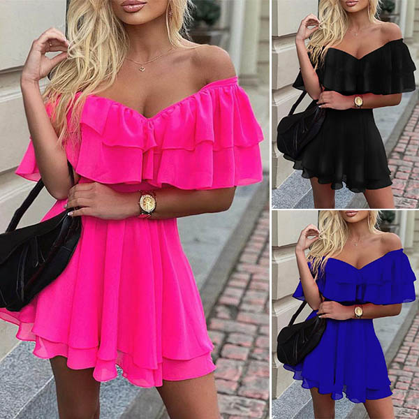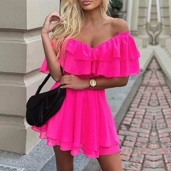 You can look so sexy and alluring when you dress yourself up with this dress. The bright color design can help you gain more eyes,while the ruffle boat neck design will make this piece look more alluring. You can match with your sexy heels and choker necklace to achieve for a more stunning look!