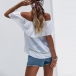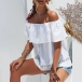 Sexy Off-shoulder Ruffle Boat Neck Solid Color Top