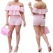 its off-shoulder ruffle and high waist design lends you a slender figure and an alluring look. Front decorated with