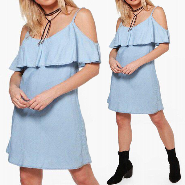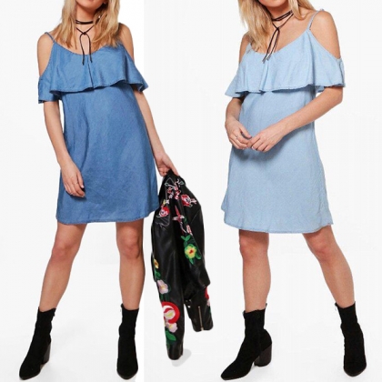 For the hot summer season,this sling denim dress would become your staple. Crafted from soft and breathable fabric,