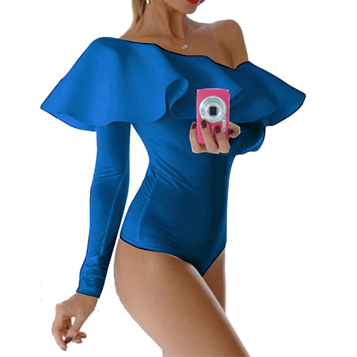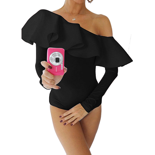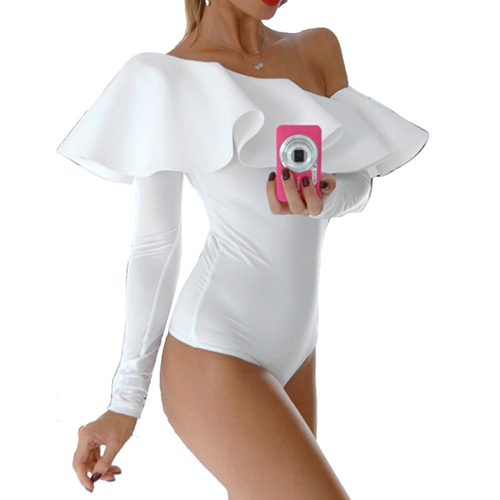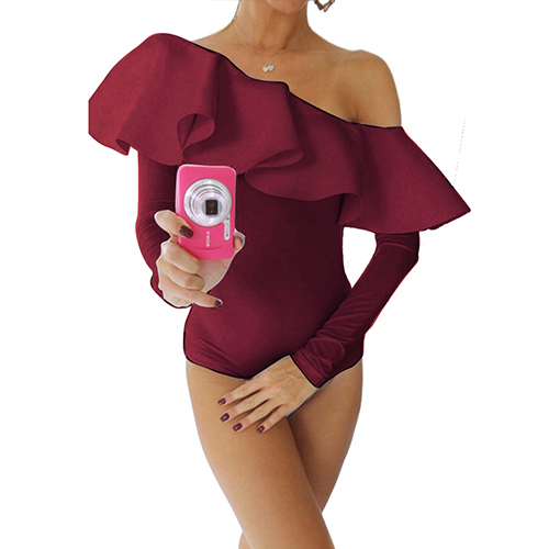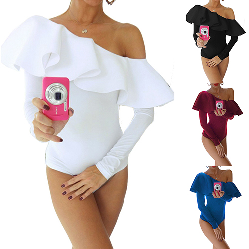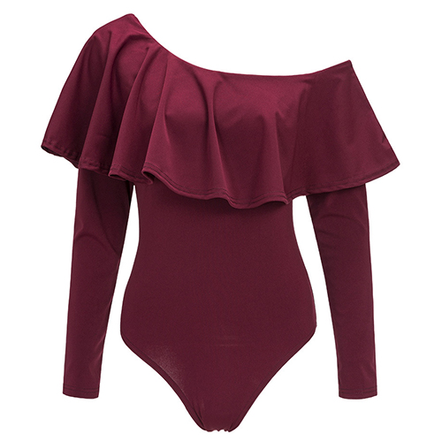 This sultry bodysuit is a good way to show off your feminine curve. Solid color style,its off-shoulder and
