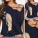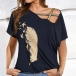 Crafted from soft and breathable fabric,this t-shirt can ensure you a cool and comfortable day. Moreover,the off-shoulder and feather printed pattern design can enhance your charm. This piece is just the thing you need on these hot summer days.