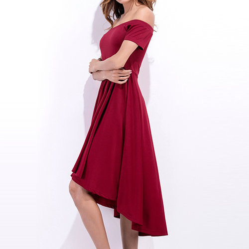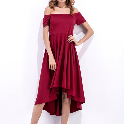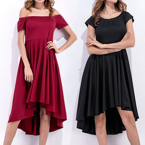 color style,elegant and generous. Its off-shoulder and high-low hem design makes this piece look more feminine and