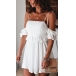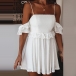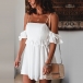 Sexy Off-shoulder Short Sleeve High Waist Solid Color Sling Dress