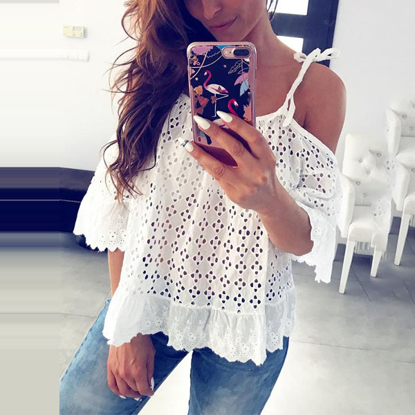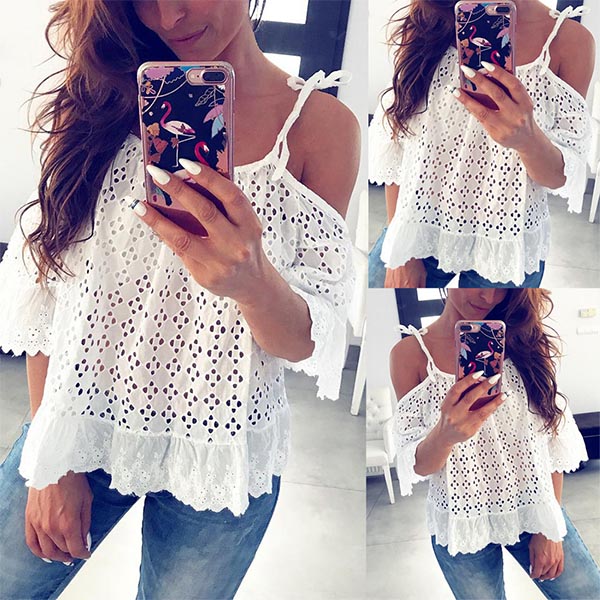 Inject a dash of sexy and flirty vibes to your daily look with the help of this top. Its alluring design details like off-shoulder and hollow out details make this piece look so attractive and sexy. Matching with a tight pants would be a good idea.