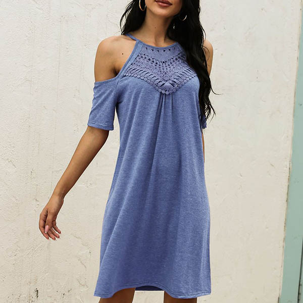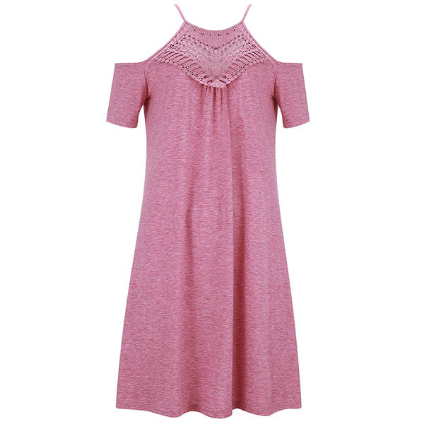 Combines of cozy,stylish and sexy vibes,this t-shirt dress is your perfect choice for your night dating and weekend out. Sling style,the off-shoulder and lace spliced details will further enhance its charm. So why not have a try to boost your style and charm?
