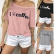 Sexy Off-shoulder Short Sleeve Letters Printed T-shirt