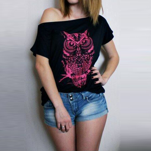 When it comes to a cozy yet sexy style,you can opt for this short sleeved t-shirt. Features owl