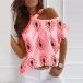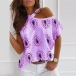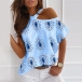 Sexy Off-shoulder Short Sleeve Printed Halter T-shirt