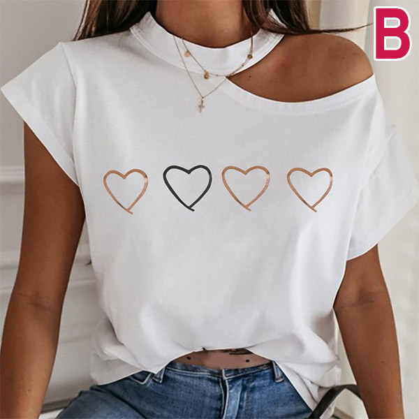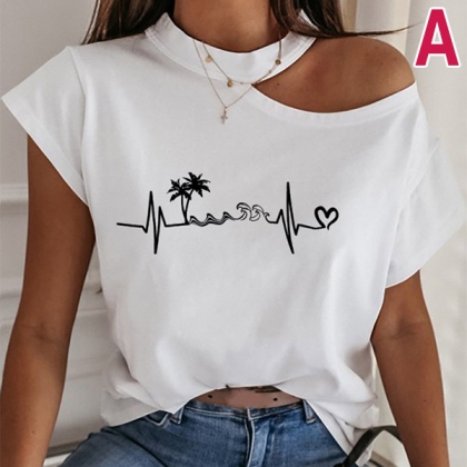 Sexy Off-shoulder Short Sleeve Printed T-shirt