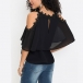 Sexy Off-shoulder Short Sleeve Round Neck Lace Spliced Top