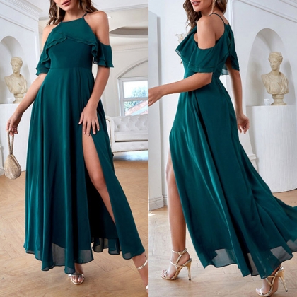 You can look elegant and charming in this chiffon dress. The off-shoulder and slit hem design make it full of flirty and sexy vibes. Comes with a solid color,this wonderful dress also can portray your slender figure. When invited to some fancy events such as weekend gatherings and night dating,this dress would be your best choice.