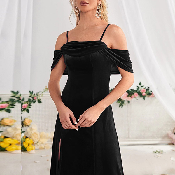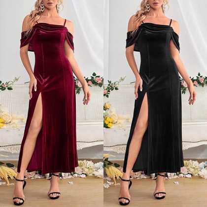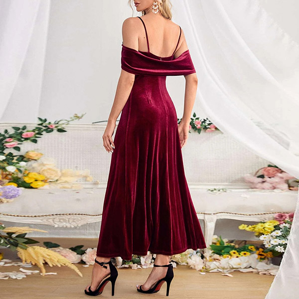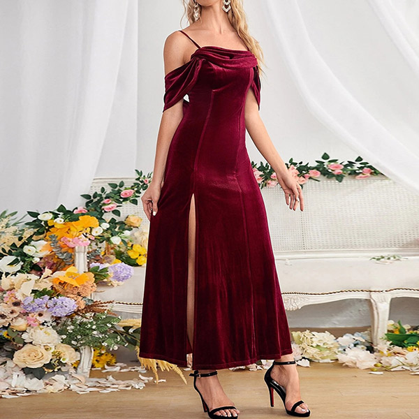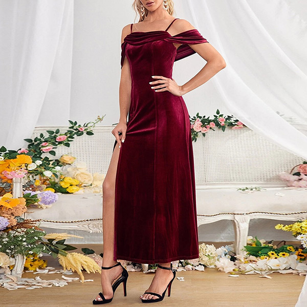 If you are worrying about what to wear for your cocktail parties and gatherings,then you can make your eyes focused on this dress. Solid color tone design makes it look elegant yet generous,while the off-shoulder and slit hem design can make you look more alluring and flirty. Paired with your sexy heels and elegant clutch for a beautiful party look!