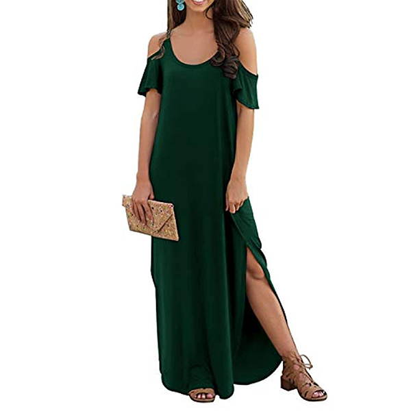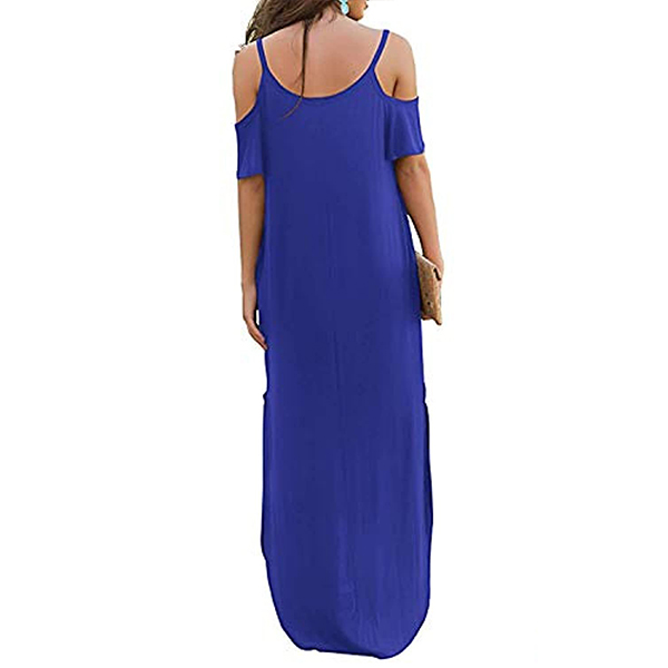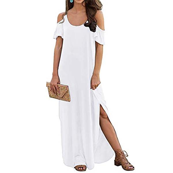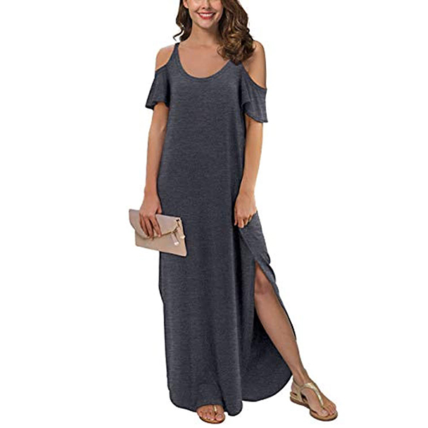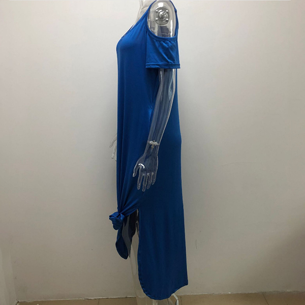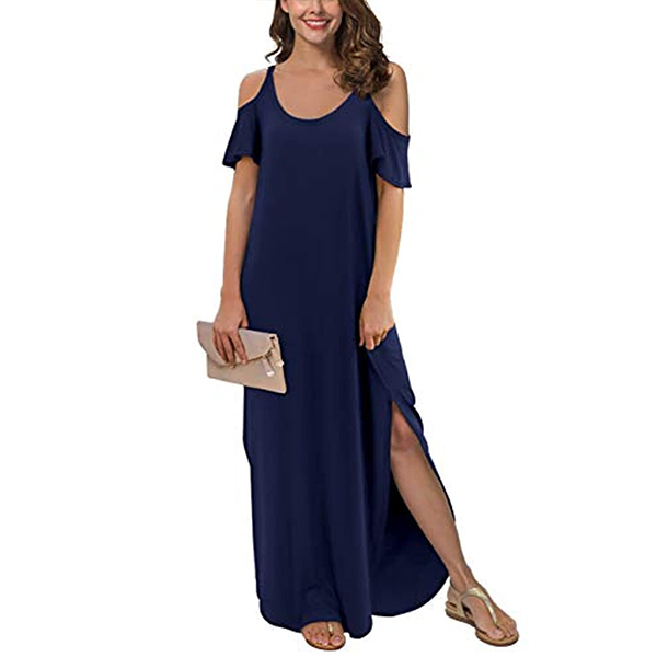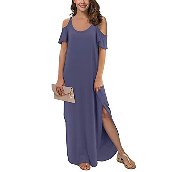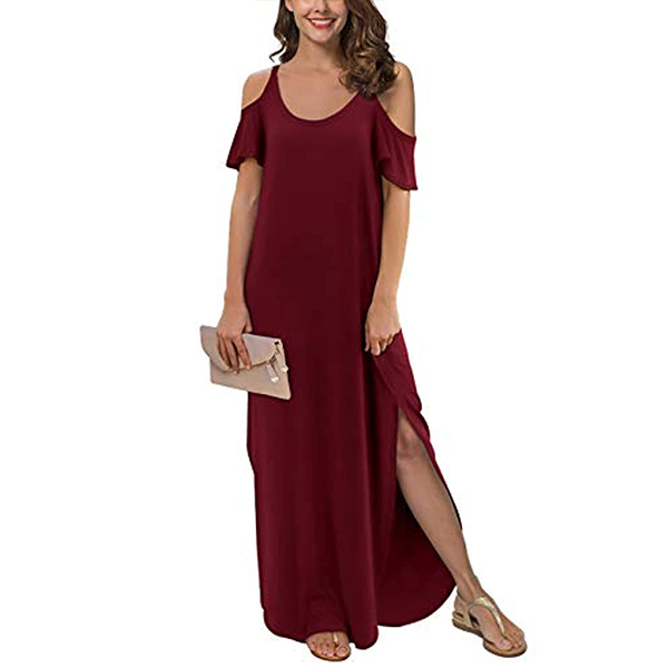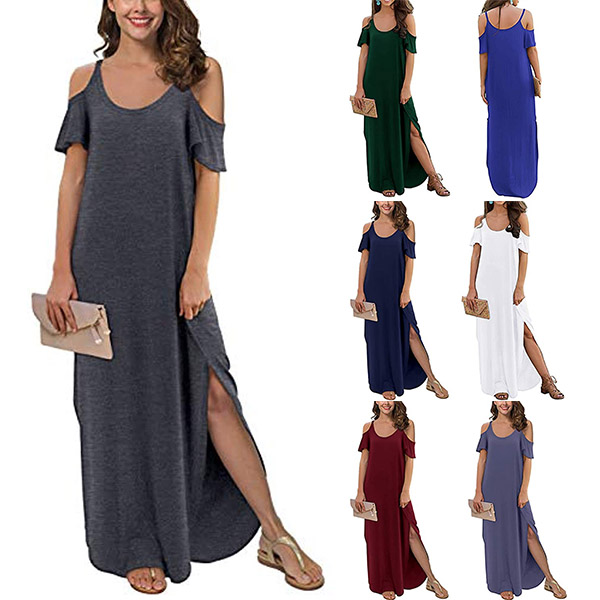 If style and comfort is what you're seeking for,then this dress is sure to strike your fancy. The off-shoulder and slit hem design can lend you a dash of sexy and flirty vibes. Comes with a solid color,with a loose silhouette and soft fabric,this piece also can ensure you a comfortable day. Your perfect choice in these summer days.