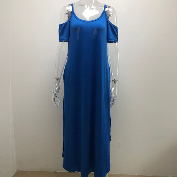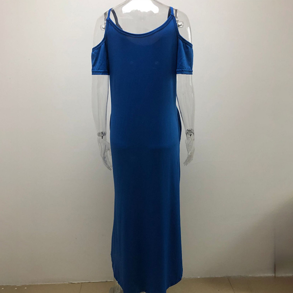 Sexy Off-shoulder Short Sleeve Slit Hem Solid Color Sling Maxi Dress