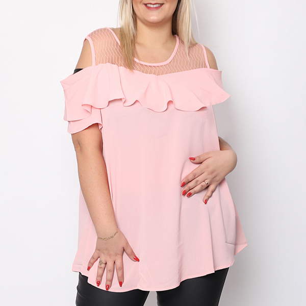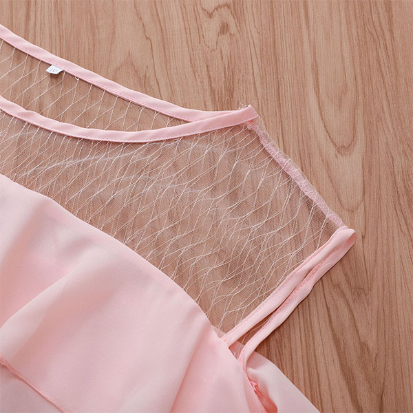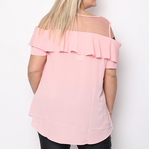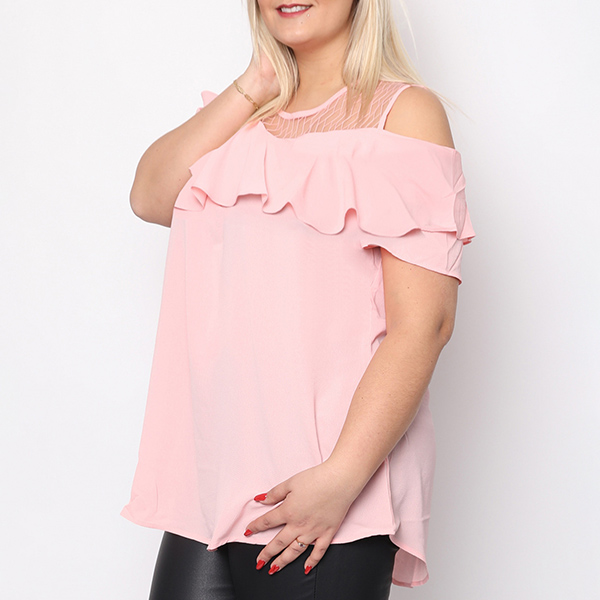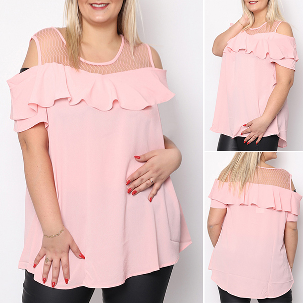 This top comes with a sweet pink tone,the off-shoulder and ruffle design can lend you a dash of flirty yet feminine appeal. Moreover,its soft,breathable fabric and loose silhouette design can give you a comfortable day. For these hot summer days,this piece can easily strike your mind.