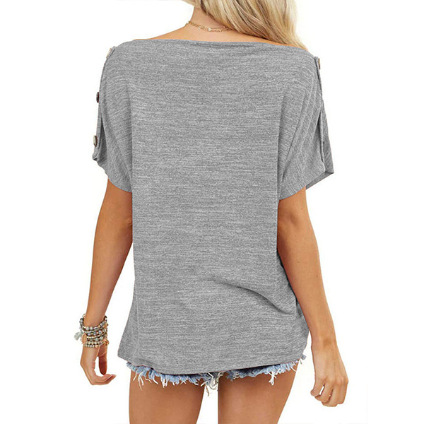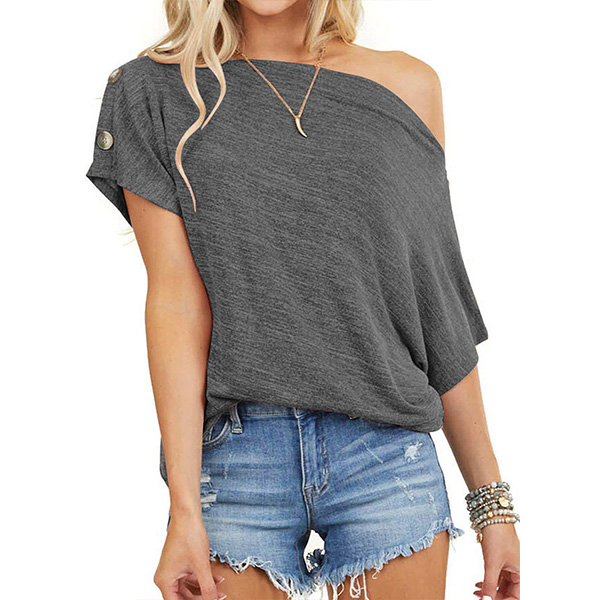 This t-shirt comes with a solid color,simple yet generous. The oblique shoulder design will lend you more style. Thanks to the super soft and breathable fabric,you can have an utmost comfort in this t-shirt. For the hot summer days,this short sleeve t-shirt is your perfect partner.