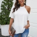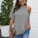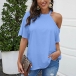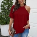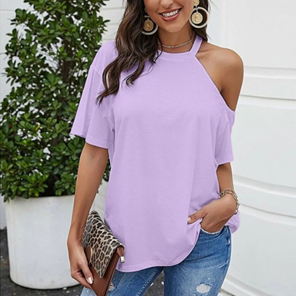 Combines of cozy yet sexy vibes,this t-shirt is worth to arouse your attention. Solid color style,the off-shoulder design can lend you a sexier look,while its soft,breathable fabric and loose silhouette design can give you a comfortable day. Try to match with your favourite pants to start your wonderful day.