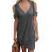 This dress that combines of cozy,stylish and sexy vibes is worth to arouse your attention. Solid color style,the off-shoulder,v-neck and twisted hem design can easily boost its entire charm. Thanks to the soft and breathable fabric,this dress also can give you a comfortable day. Just slip into this dress to enjoy your time and express your personality!
