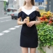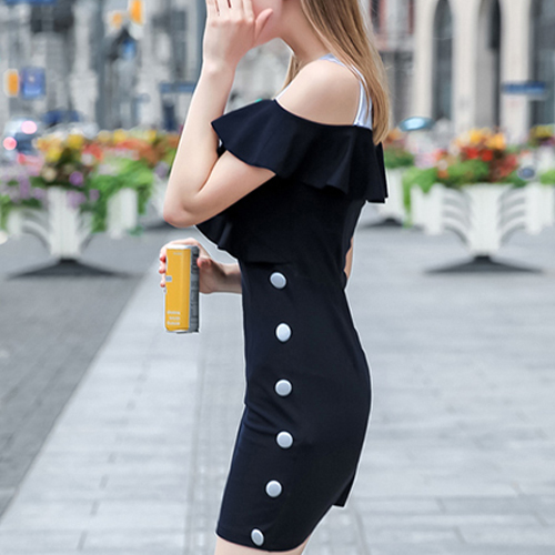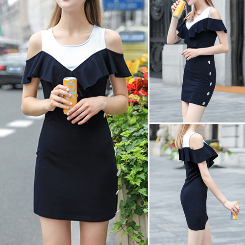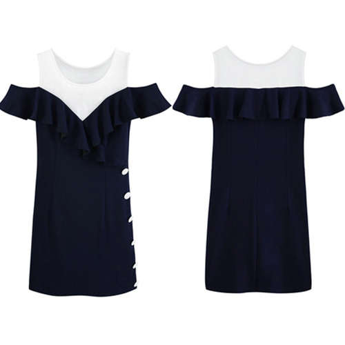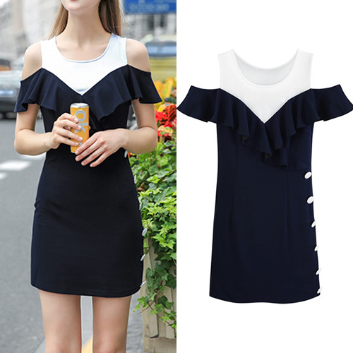 Charming appeal comes easily once you slip into this dress. Contrast color style,its off-shoulder and flouncing