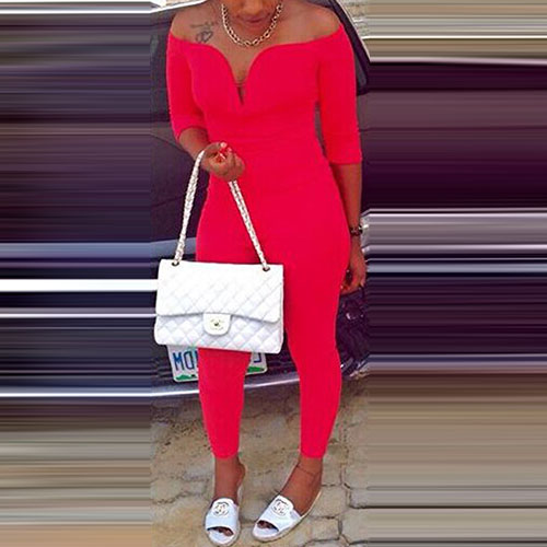 your slender figure. And its slash neck with off-shoulder design makes it look more sexy and sultry. Adding a