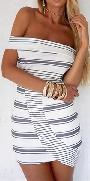 Add this little stunner to your wardrobe! Striped style,its slash neck,irregular hem and off-shoulder