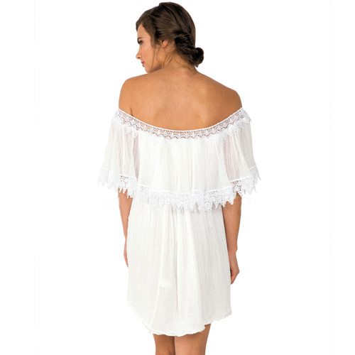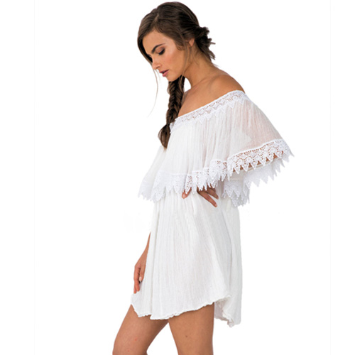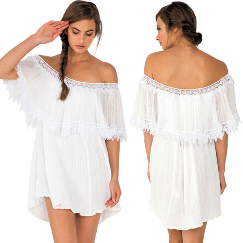 This dress features off-shoulder slash neck design,sexy and charming. Lace spliced design
