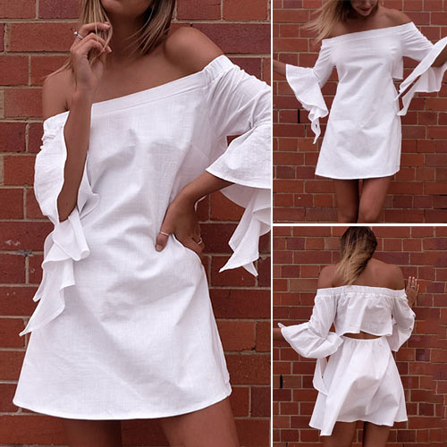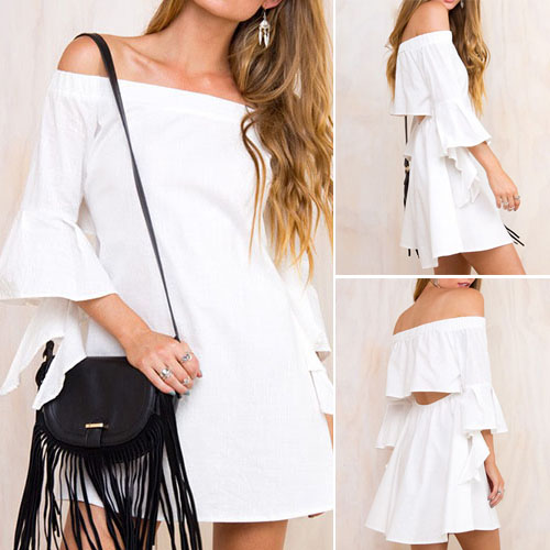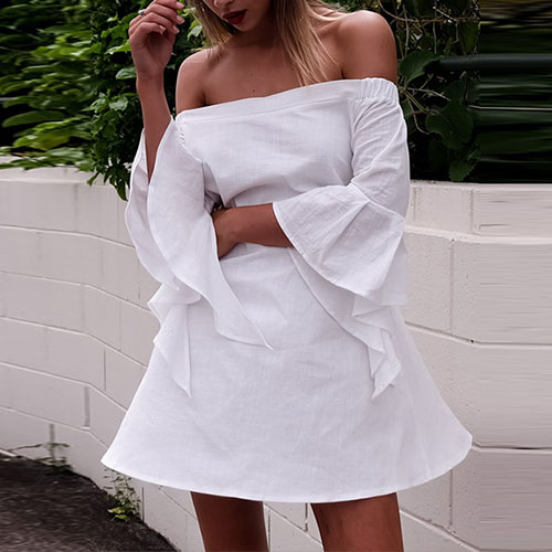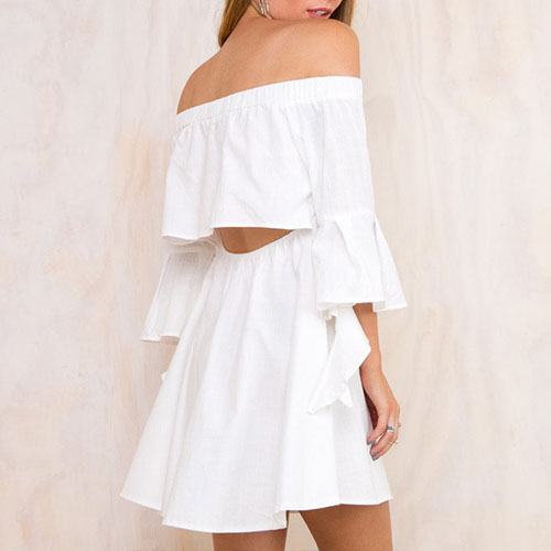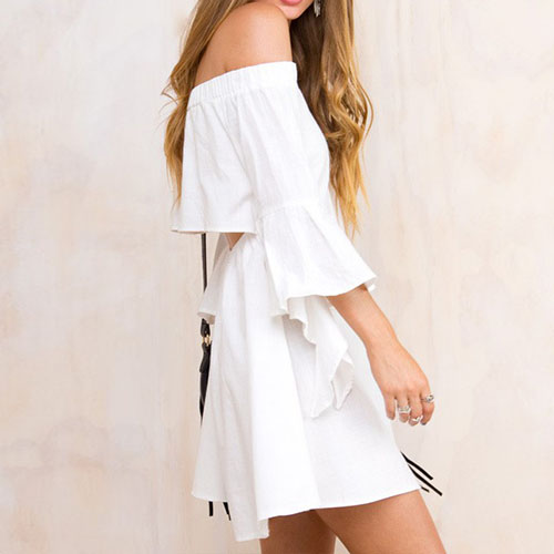 Showcase your sexy and charming style through this dress. Boasting a solid color,its off-shoulder