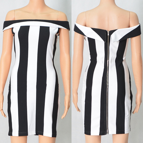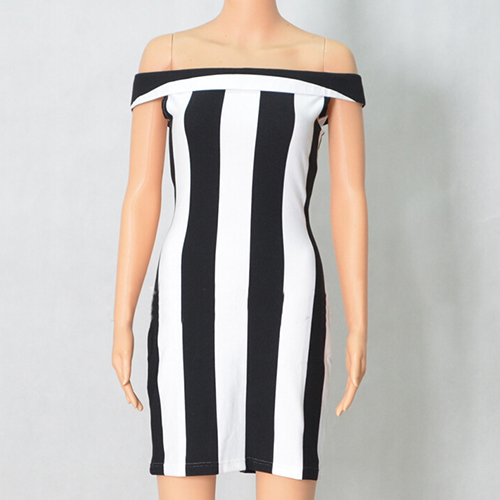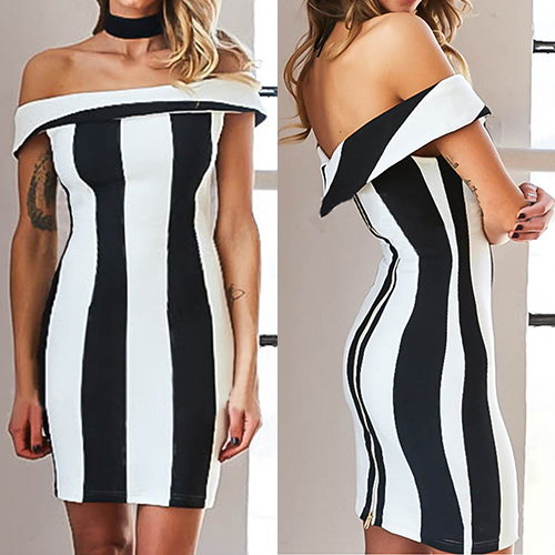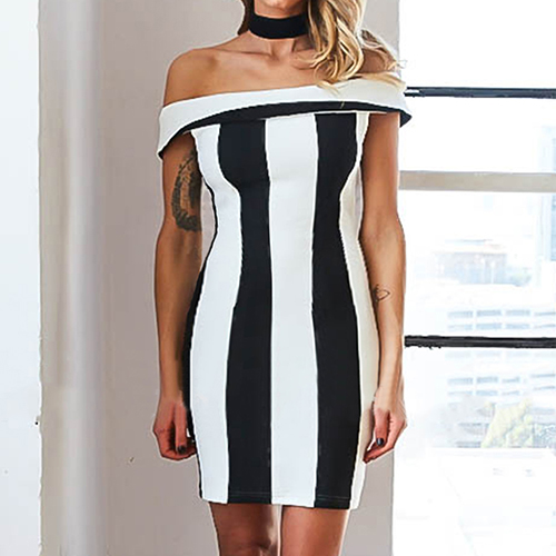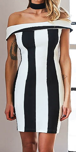 designed with a slash neck and a fit silhouette,this dress can perfect set off your seductive curve and