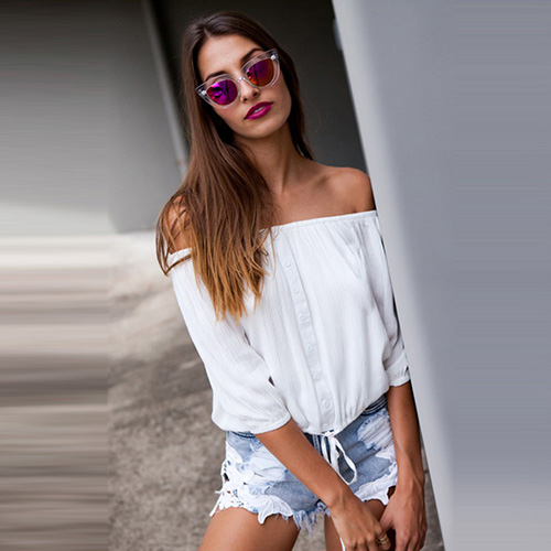 buttons and hem with lace-up design. Try to pair it with your denim shorts.