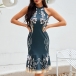 One of the easiest ways to cultivate your charming style and seductive curve is through this delicate dress! The chic printed details will make this piece look more eye-catching,while the fit silhouette and fishtail hem will showcase your slender figure. For your fancy events in these summer days,this sleeveless dress can be your perfect choice.